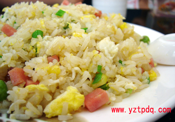 揚(yáng)州的蛋炒飯,風(fēng)味各異,品種繁多,有“清蛋炒飯”、“金裹銀蛋炒飯”、“月牙蛋炒飯”、“蝦仁蛋炒飯”、“火腿蛋炒飯”、“三鮮蛋炒飯”、“什錦蛋炒飯”等等。